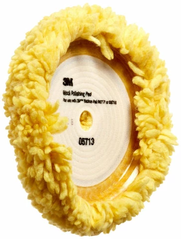 Single Sided Yellow Blended Wool Polishing Pad; removes compound swirl marks and fine paint surface defects. Use with 3M Machine Polishes and 05717 or 05718 3M Hookit Back Up Pad. Proven performer.