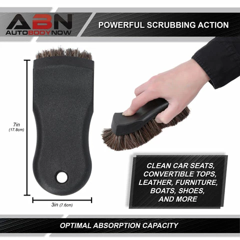 - [Detail Your Car]: Help remove stains and loosen dirt without causing damage to sensitive surfaces with ABN Car Seat Cleaner Horsehair Brush; Car cleaning brush is durable yet soft for car detailing