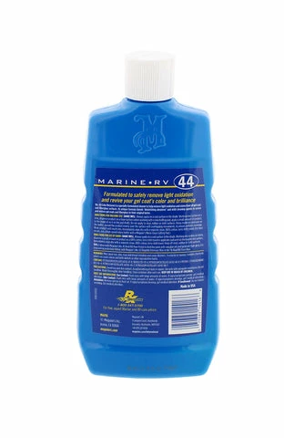 - Safely removes light oxidation, stains, and blemishes from fiberglass gel coat surfaces