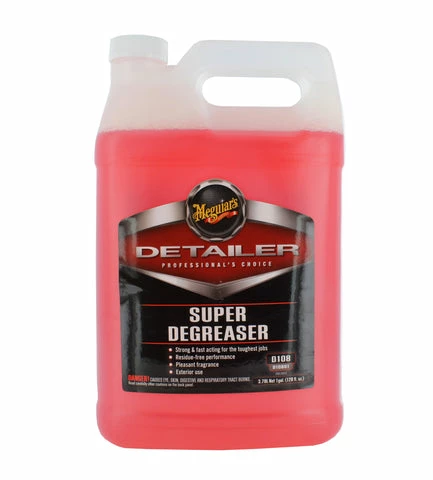 - Meguiar’s Detailer Super Degreaser (1 gallon) exceeds expectations with an amazing formula that quickly breaks down the toughest grease. Super Degreaser is a fast acting, free rinse formula that prevents unsightly white residue stains. Leaves an herbal fragrance behind.