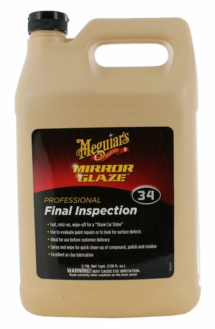Meguiarβs Mirror Glaze Final Inspection (1 gallon) will ensure fast, easy maintenance of that deep gloss shine. Sprays and wipes quickly for efficient clean-up of compound polish and residue.